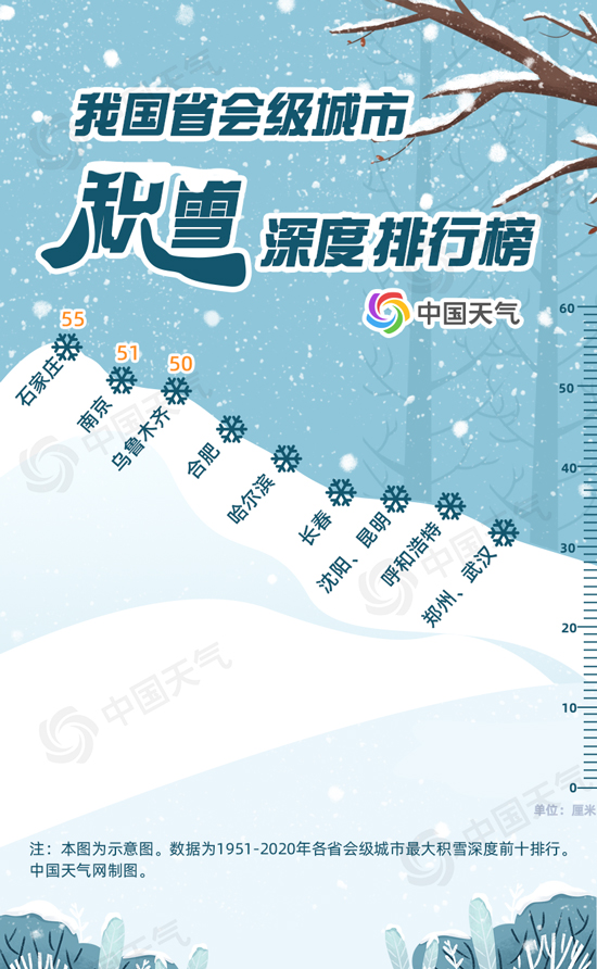 如果說(shuō)“中國(guó)雪窩”以深度讓人們震驚,省會(huì)級(jí)城市積雪排行榜的結(jié)果也讓人有些意外。