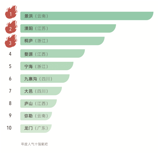 根據(jù)攜程研究院監(jiān)測的游客實(shí)際到達(dá)人數(shù),評(píng)選出2020~2021年度人氣最旺的10家中國天然氧吧,位列前三甲的分別為云南景洪、江蘇溧陽、浙江桐廬。